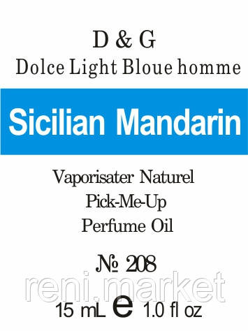 Парфумерна олія (208) увірсія аромату Дольче&Габмана Dolce Light Blue poour homme — 15 мл композит у ролоні