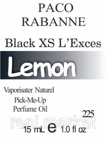 Парфумерна олія (225) версія аромату Пако Рабан Black XS L'Exces — 15 мл композит у ролоні